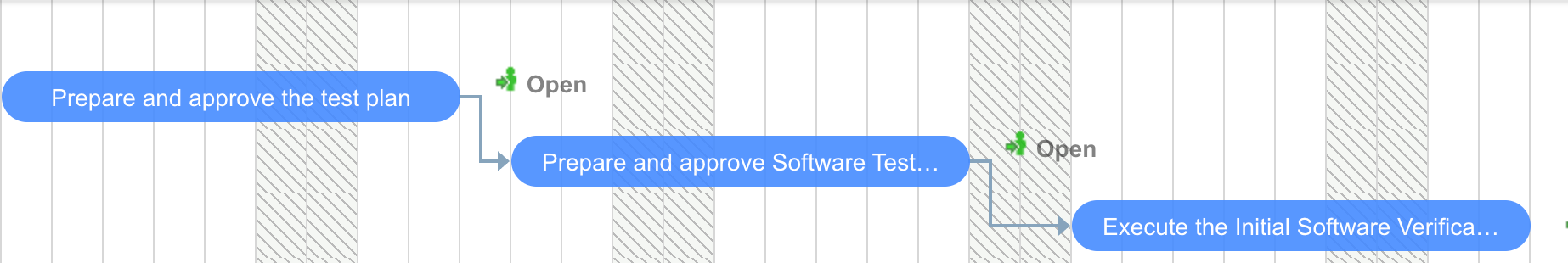 Standard Gantt charts display dependency arrows from the source task to the dependent task. In contrast, Polarion’s default link role “depends_on” defines the relationship in the opposite direction, linking the dependent item back to its source.