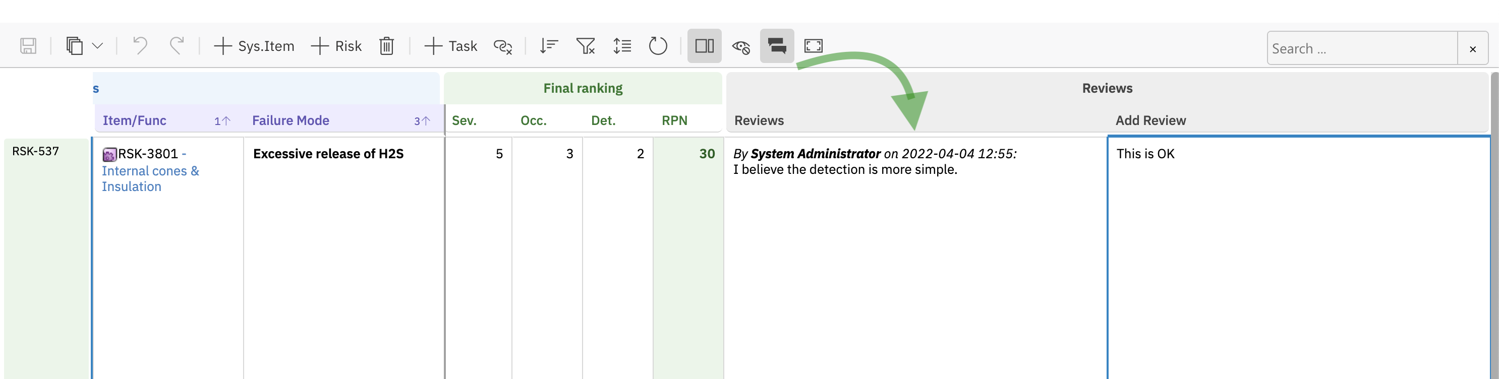 To enable review functionality, add the following to your risksheet.json configuration: