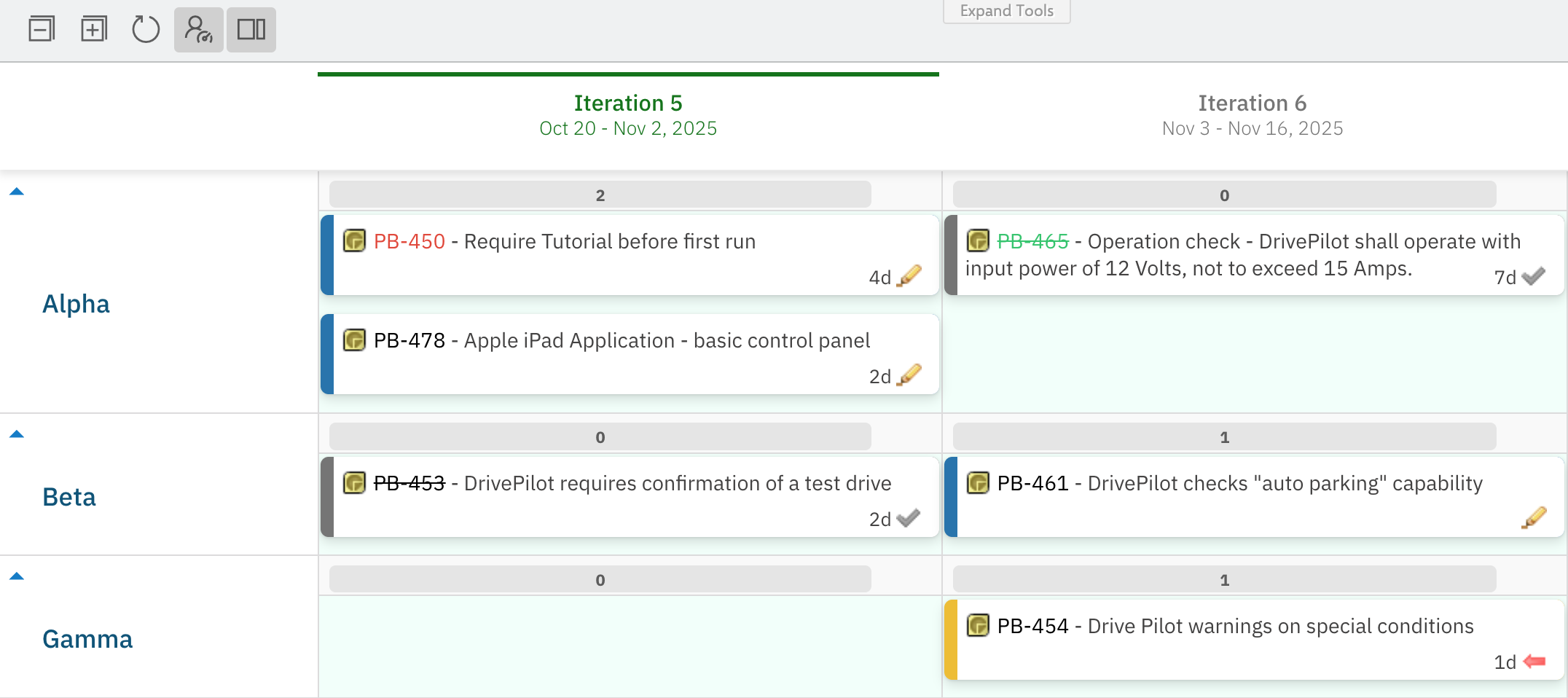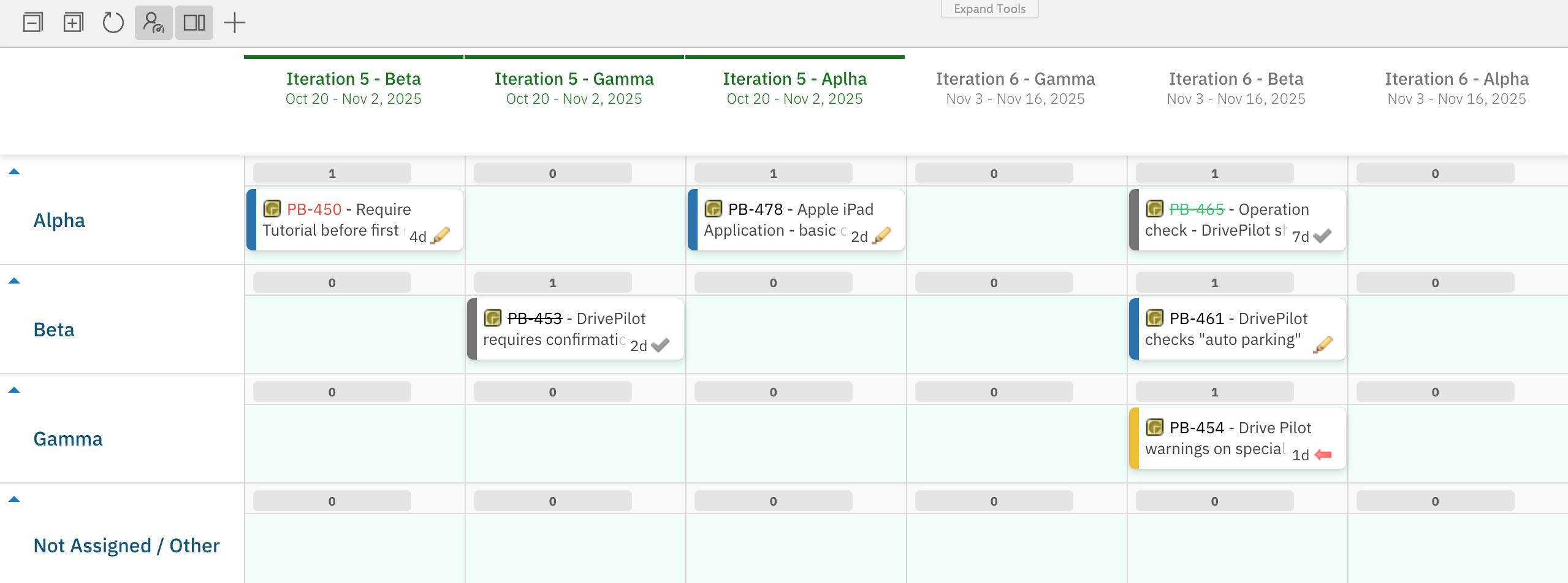 - With Normalization on → Planningboard understands both the team and the iteration. - Moving a card from Iteration 5 - Alpha to Iteration 5 - Beta will automatically update its team and iteration fields accordingly. Check it in the screenshots below: