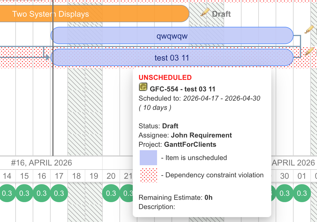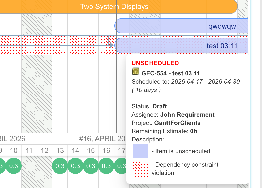 You can now customize these tooltips by adding fields for example Remaining Estimate and Description, depending on your needs. These customizations will be added in the Advanced section of Gantt Parameters.