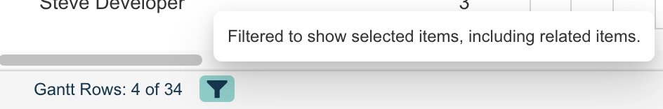 Gantt supports filtering of rows to help you better focus on relevant items in the timeline. While filtering by time range was available earlier, version 25.4.1 introduces additional options to filter by item, resource, and allocation. This version also brings improvements to the funnel icon.