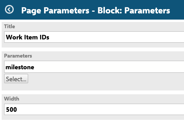 Additionally, we don't want to show all Milestone-type items from the Gantt3 project - only specific ones. To achieve this, we'll use a Page Parameter, which you can configure in Edit mode. For this example, we'll create an Enumeration-type Page Parameter, because we want to display a dropdown menu with Milestone WIs. The parameter ID must match the one used in the script, so we name it 'milestone':