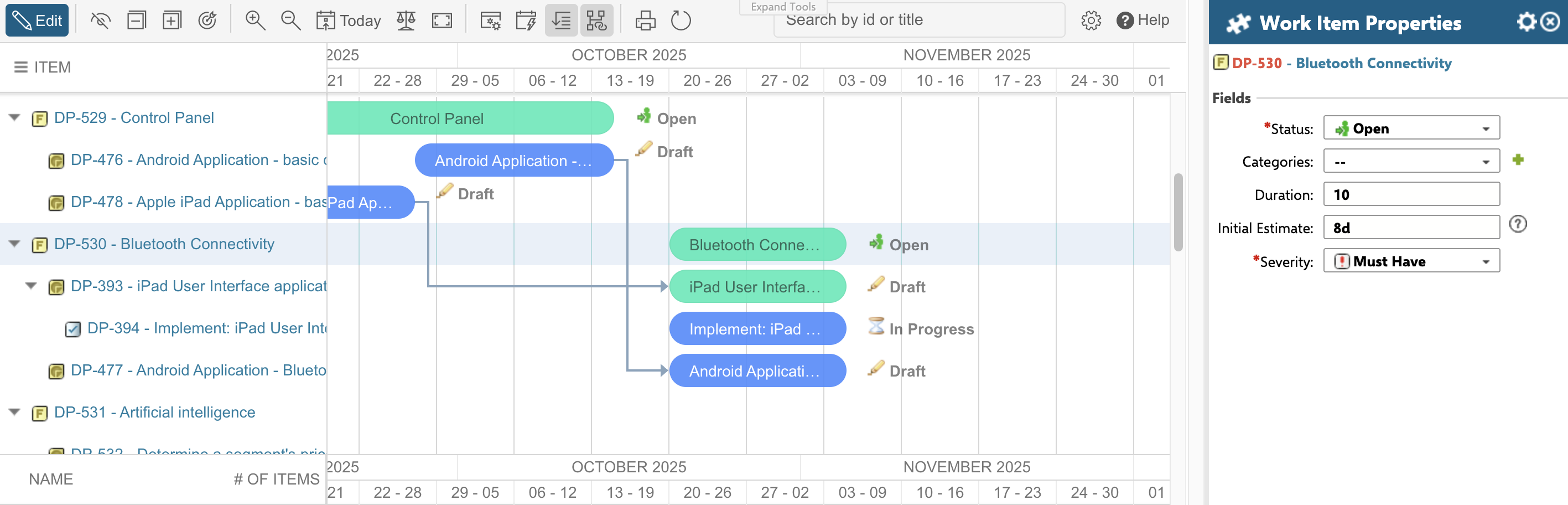 - You can click on a Work Item to open its details in the sidebar